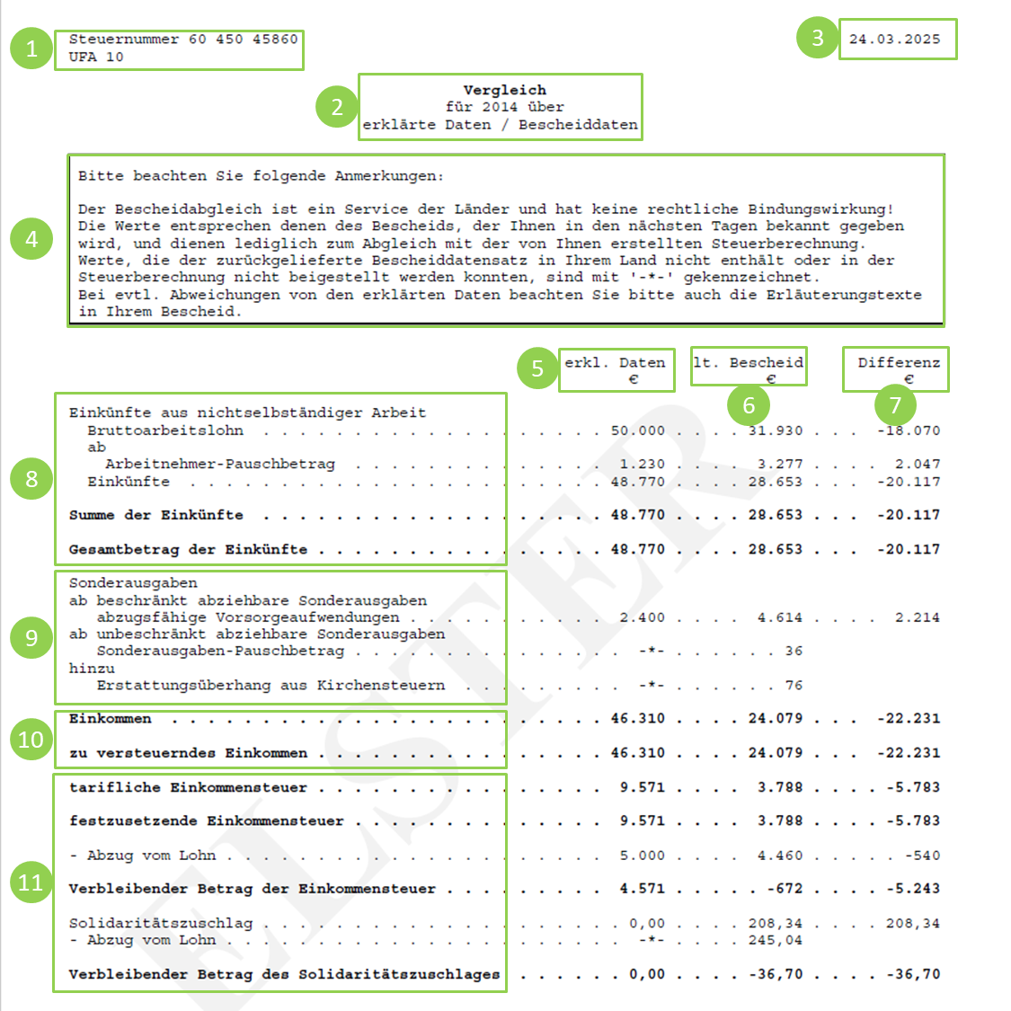 - Achten Sie auf Abweichungen (z. B. beim Bruttolohn, Sonderausgaben, Einkommen)